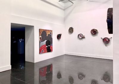 « Ce qui se joue ici c’est un échange, un don et un contre-don qui dit assez la confiance faite à un ami. Chacun active chez l’autre ce qui était resté en puissance dans son travail. Gouéry emporte dans son atelier les tamis abandonnés de Conte qui deviennent comme des mantilles sur un visage de porcelaine cuit dans son four alchimique d’où sont sorties des créatures aux yeux en forme d’anus et des patères-phallus aux testitcules profilés en statues de l’île de Pâques. (…)