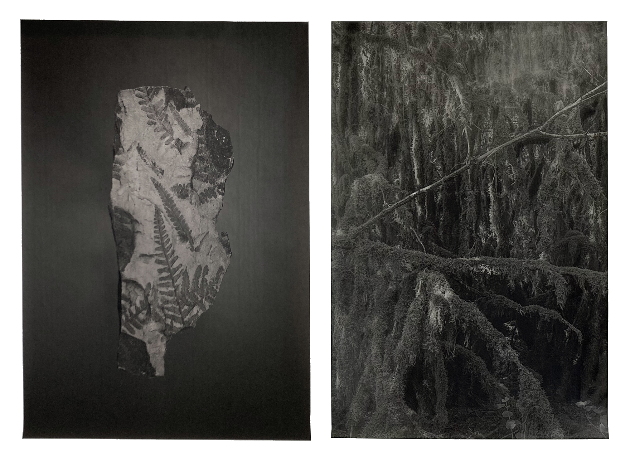 L’exposition s’articule autour de la mise en écho de deux corpus d’images, chacune étant la matérialisation photographique d’une temporalité plus qu’humaine – l’une témoignant de la mémoire ancestrale des forêts originelles du Dévonien, l’autre révélant le spectre vibrant de forêts contemporaines – chacune se réverbérant dans l’autre. L’espace d’exposition est alors pensé comme le corps mémoriel et vibrant – en couches subtiles entrelacées – de la forêt.